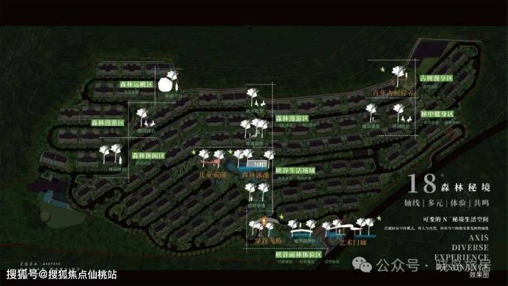 与操刀万科17英里、龙湖舜山府等标杆项目的道远景观主创团队协作,借鉴六善酒店、巴厘岛等高奢度假酒店景观巧思,以“居山观海,极致视野”的设计理念,“一主两次轴线,七大景观核心区,八大自然场景”造景格局,诠释隐林山涧的隐奢秘境。