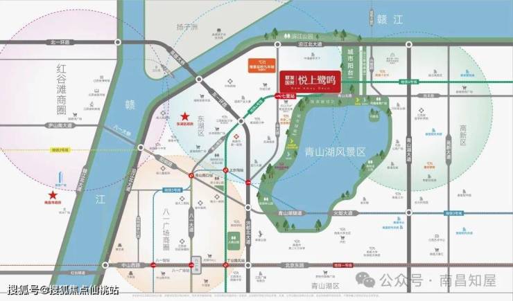 联发国贸·悦上鹭鸣——联发集团新悦系迭代作品,国匠联袂,敬献南昌。项目雄踞南昌城市地标--青山湖西岸,通江达湖近享难得城市自然风光,坐拥东湖区醇熟配套,畅享如旅城市度假生活。总建筑面积约9万平方米,规划落建的城市阳台将项目两面合围,北联约150万方滨江公园,南接约400公顷青山湖风景区,成就青山湖西全新生态人文旅游轴带;紧邻三号线七里站,高效出行「加速度」,出了轨道交通2号口,就是家门口,畅通全域随性即达;一路之隔毗邻赢得广泛美誉的豫章教育集团总部,项目内享1所幼儿园,外拥九年义务公立学校,优质师资铺就英才之路。以2.5超低容积率规划,于青山湖西岸,打造建面约100㎡、121㎡、135㎡三至四房,以百年建筑凝萃,造一座青山湖学府精筑,划时代人文作品。