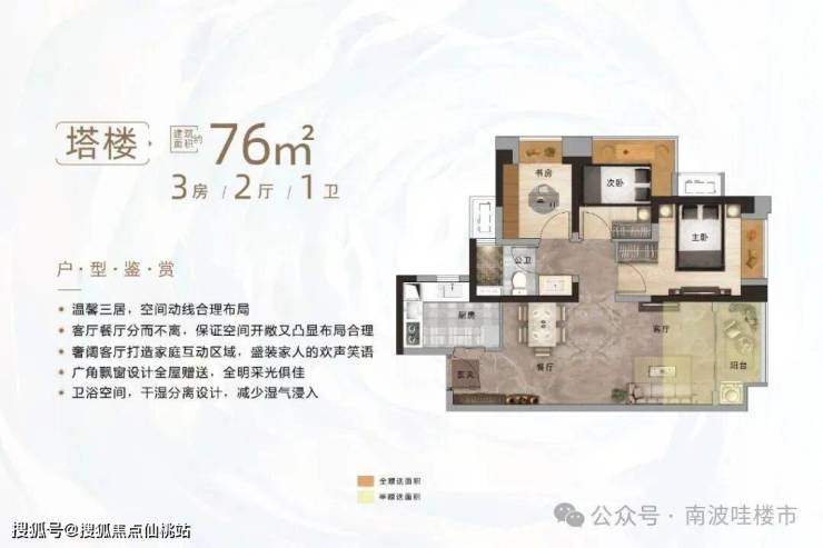| 塔楼 约76㎡3房2厅1卫 |