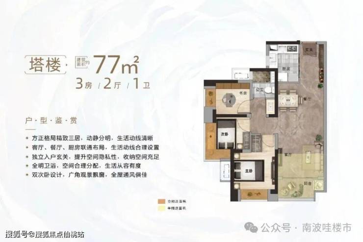 | 塔楼 约77㎡3房2厅1卫 |