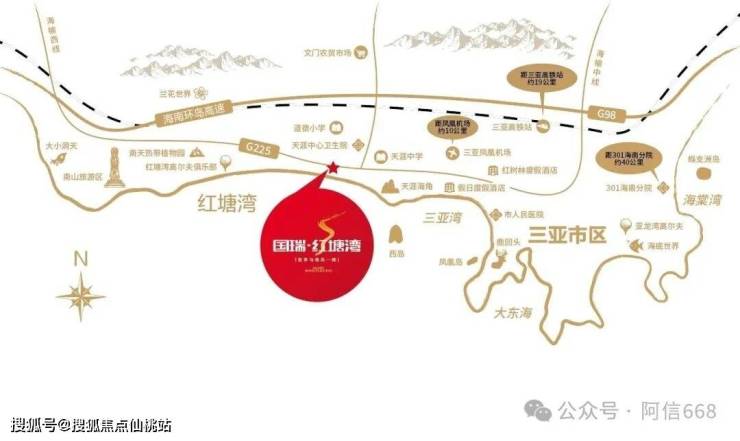 三亚国瑞红塘湾位于三亚市区红塘湾,东侧挨这天涯小镇,和天涯海角景区,项目距离海边仅300米左右。