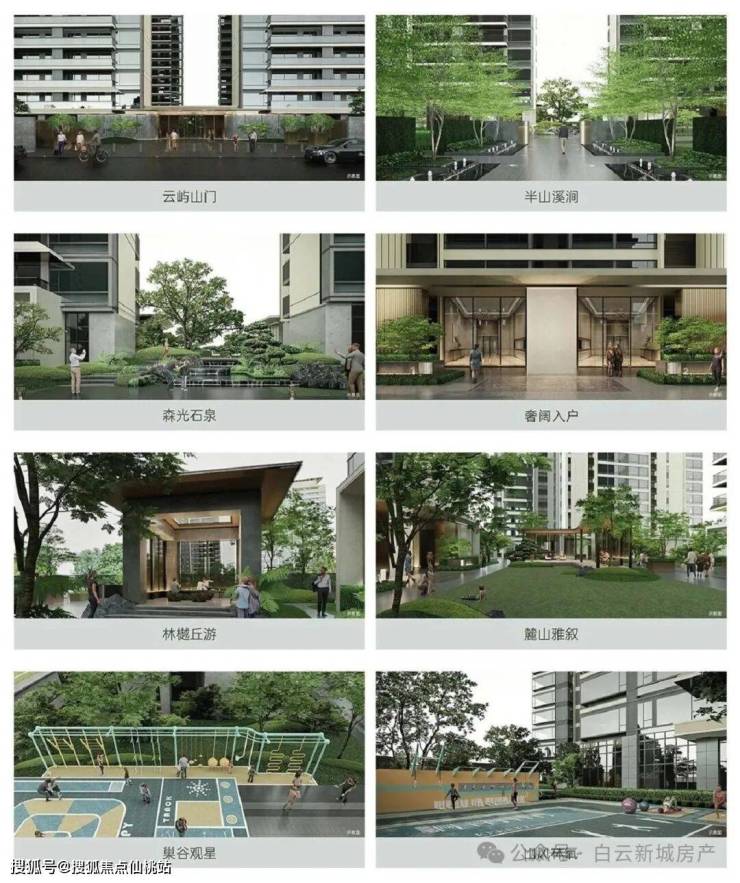 项目园林以“一轴九苑”的布局打造,人行主入口两侧为礼仪中轴和艺术水景。与云山互为呼应,园内设有林泉会客厅、休闲平台、阳光草坪、露营剧场、儿童游乐园等。为社区全年龄段的业主提供会客社交、休闲娱乐、邻里交流等各种的需求。