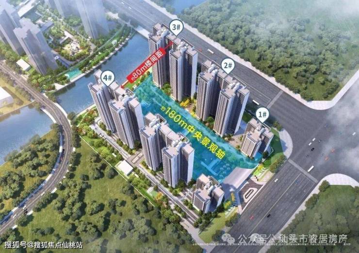 以约80米楼间距,打造超万平中央景观花园