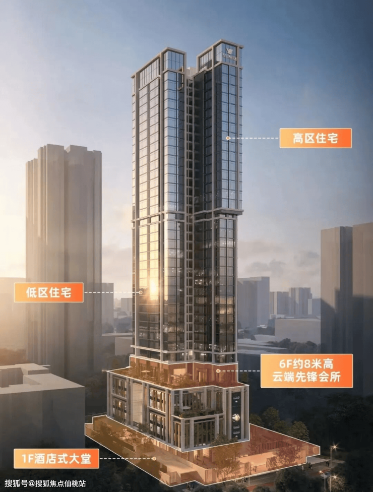 越秀东山云起项目总高37层,其中1-6层为配套设施,7层和22层为架空层,从8楼开始才是可售的住宅单位,项目周边基本都是楼龄比较旧的二手,所以这116套新规住宅注定会很抢手。