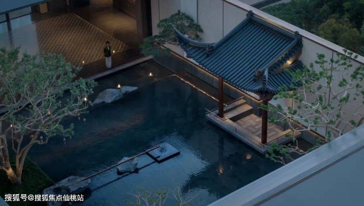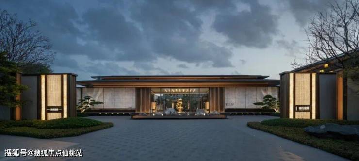 建筑外形上提取宋韵建筑的精巧典雅,以传统装饰纹样“凤鸟纹”和良渚文化“玉琮”为设计灵感,将凤鸟冠顶与玉琮身段巧妙地融入建筑设计中,演绎为漂浮感的顶部造型和简洁舒展的立面肌理,结合超大窗墙比,使得整个项目呈现出一种东方人文大宅的气质。