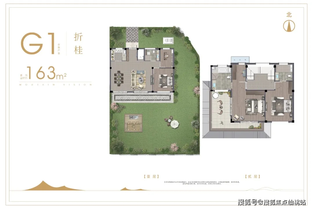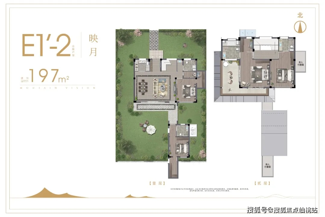 【一层】庭院风雨连廊,双面四季美景,餐客厅一体,双卧双套房,豪门礼遇!