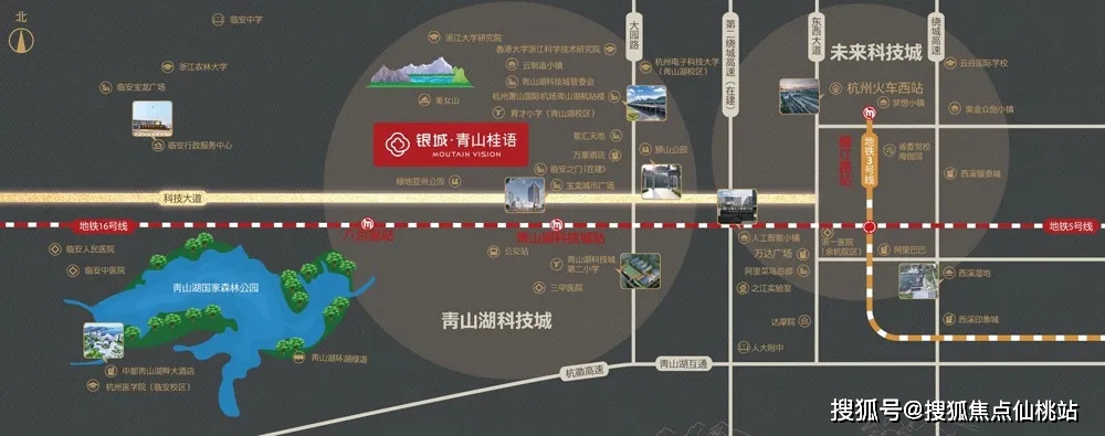 直线距离约1000米地铁16号线八百里站,7站瞬达未来科技城,换乘5号线畅游杭城。南邻16号线配套快速路——科技大道,串联重磅城市配套,有望接驳文一西路,无缝联通未来科技城。