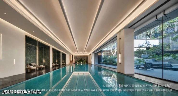 会所以“海棠碧波”为设计母题,巨幅玻璃幕墙将山水中庭的天光云影纳入室内恒温泳池,使游泳体验成为与自然的对话。