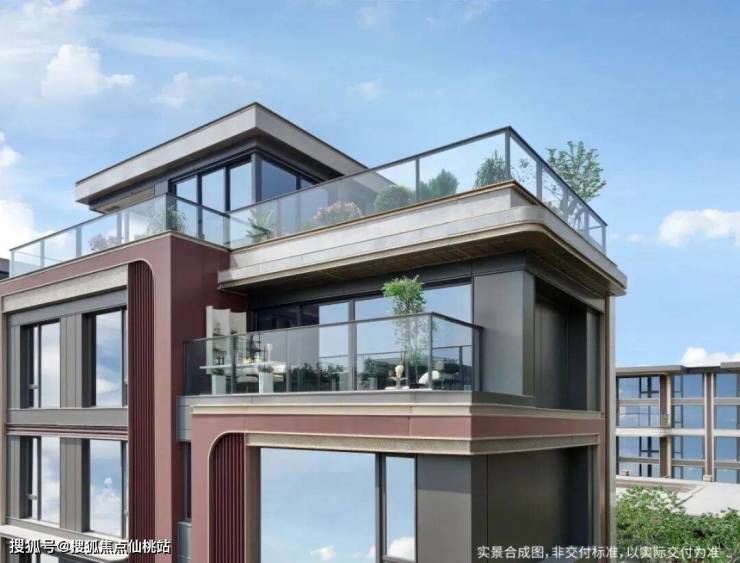 叠墅采用高端铝板搭配爱马仕灰石材与闽南红陶釉板,打造近乎0涂感的新闽南美学立面。