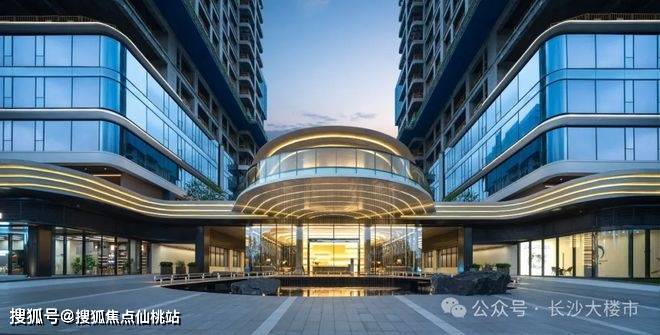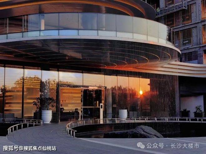 “超平面”美学体验,大面积玻璃幕墙,弧线形柔性转角,让建筑轻盈灵动,消隐于湘江天地之间