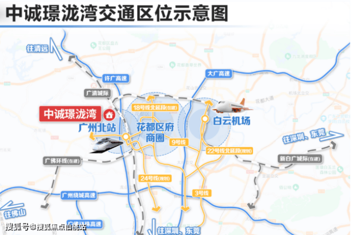 中诚璟泷湾位于广州市花都迎宾大道旁,位踞白云机场+广州北站唯一空铁联运枢纽,约400亿规划建设空铁+免税店双驱动的北站新城核区位。多维交通网络全覆盖,汇聚世界资源,坐拥价值潜力。