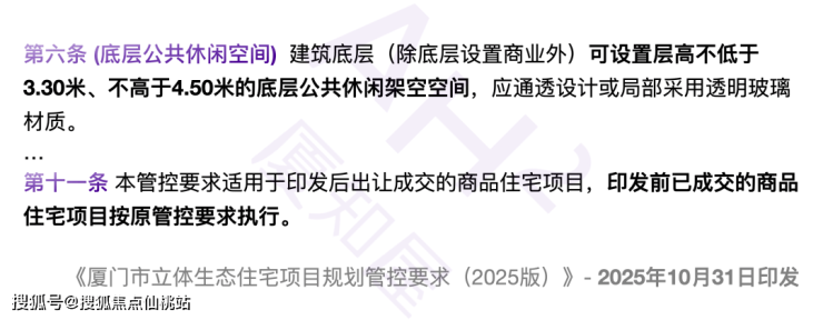 这不仅带来了震撼感十足的归家仪式感,更带来了非常夸张的实际居住高度,同样的楼层,比别人离地高度高出近乎3层,即便是2楼,也有其他项目5楼的通透视野体验,这在全新四代宅新规下,是绝版而无法复制的。(架空层高度不得高于4.5米,具体参考下图对新规条例的引用)