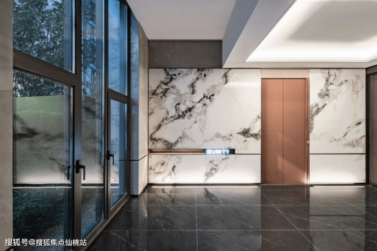 地下光厅,则是一处静谧的光之容器。云石纹理软膜天花漫射均匀光线,墙面与地面延续温润统一的色调,指引清晰,步履从容。从停车到入户,始终被宁静与尊崇环绕。归家礼序空间,以精工材质与细腻光影,将每一次归来,沉淀为一场身心安顿的仪式。