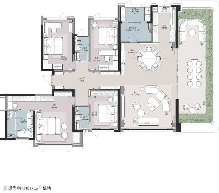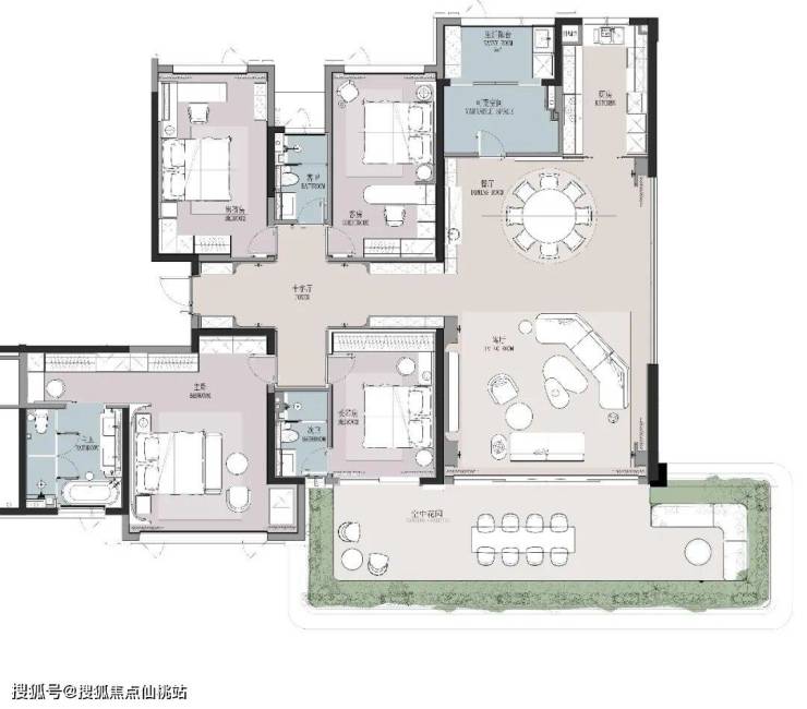社区规划上,酒店式双主入口,恢弘迎宾界面极具排面;约5万㎡高定园林,构建「一带·两轴·一环·六园·十一馆」景观格局,涵盖下沉式庭院、全景式鎏金画廊、约105米楼王央境艺廊等多个人文艺术场景;整个社区约1472㎡的全域水景,呈现出休闲惬意的滨水度假生活场景;同时,在社区内打造约2500㎡「乐高积木式」架空层泛会所。