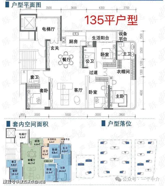135㎡的是主流改善款,加赠送套内约156平,得房率约116%空间更宽敞,四开间朝南采光,主卧衣帽间、卫生间一应俱全,双套房设计,居住体验直接升级。
