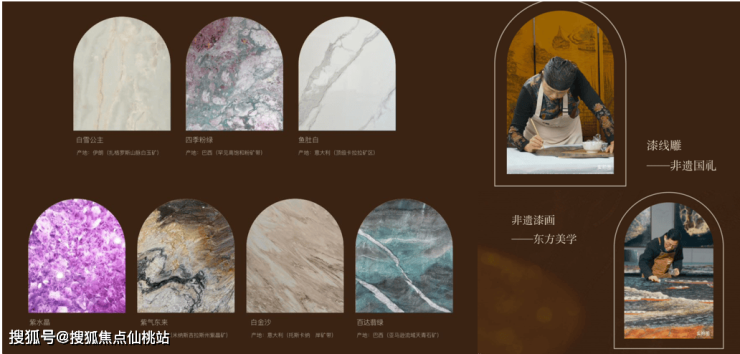 项目秉持“精工匠造”理念,在建筑营造中,严选巴西的百达翡绿、意大利的绿山水、西班牙的皇室咖等全球珍稀奢石,深度融合国家级非遗漆线雕、传统漆画鎏金技艺、螺钿镶嵌工法及惠安石雕工艺,将文化传承与现代建筑美学进行创新性表达,实现空间质感与艺术价值的双重升华,有效回应了顶豪人士的精神追求与文化期待。