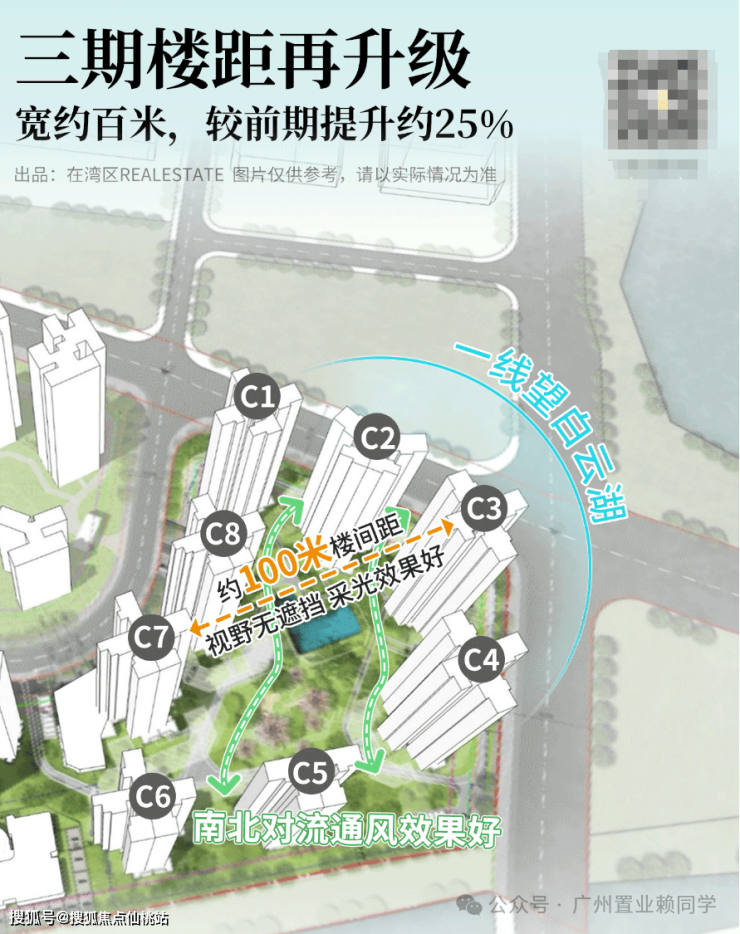 三期规划纯南向高层洋房,低密T4/T5规划,最高楼间距超100m(部分楼间距实测),敬献城市全生命周期精英客群,选择越秀天悦云湖,选择主城区进阶生活方式。
