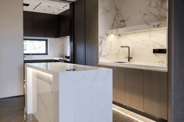 这里已经不仅仅是个做饭的地方,更像一个展示生活品位的高定空间。