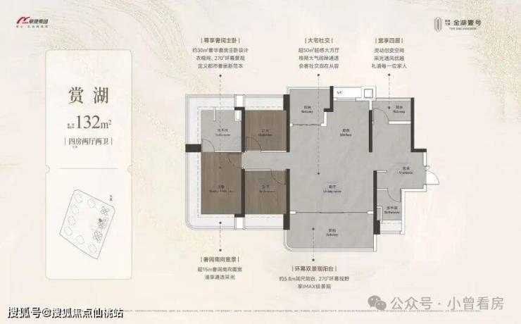 131-132㎡四房同样为全南向,部分户型能眺望湖景;