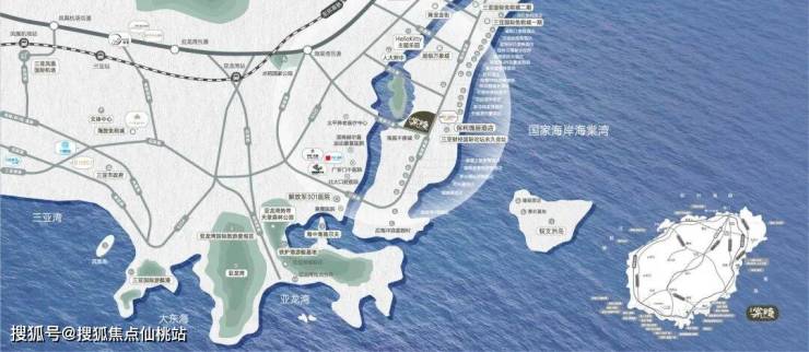 从航拍来看保利棠隐的位置,相当不错,属于海棠湾二线的稀缺别墅产品,