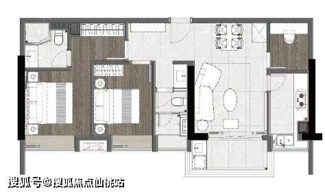 建面115㎡三房两厅两卫,LDKG一体化设计,纯东向横厅设计,公卫三段式分离,最大化提高效率。