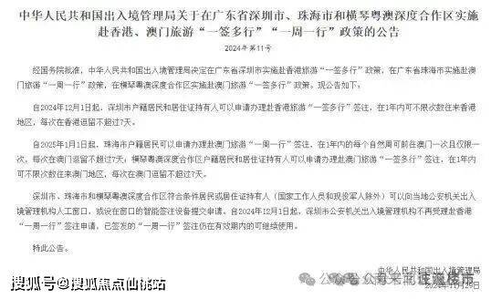 自2025年1月1日起,横琴粤澳深度合作区户籍居民和居住证持有人可以申请办理赴澳门旅游“一签多行”签注,在1年内可不限次数往来澳门地区,每次在澳门逗留不超过7天,一签多行” 便利政策的实施,将促进琴澳两地文旅资源进一步融合发展