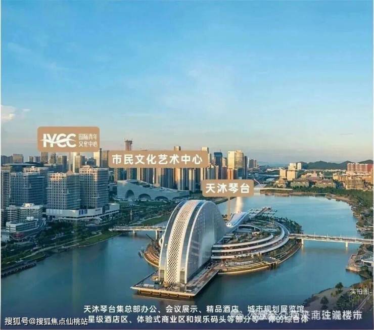 天沐琴台位于天沐河东段核心区人工岛,位于项目正对面,被誉为“横琴之心”