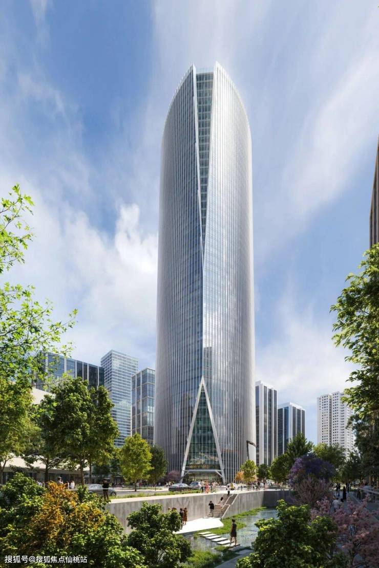 项目建筑高度212米,为片区第一梯度高度,区位及显示度极佳。标识性三角形主楼形态象征企业深厚根基,三条边象征企业发展的三道,即制度之道、战略之道、文化之道。