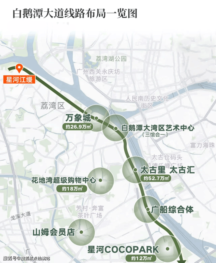区域规划:白鹅潭未来超10条地铁、100+重点项目(如太古里、三馆合一),但现阶段周边仍是老城区界面,城中村与旧厂房交织,至少5年难有质的变化。