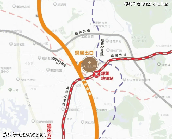 地铁:临近地铁 4 号线观澜站,步行约 10 分钟,未来可换乘在建的 22 号线;距离 4 号线长湖站约 1.1 公里,周边还有在建的 18 号线。
