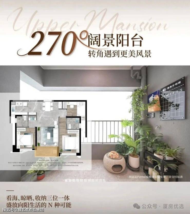 阳台是连接室内与自然的 “过渡带”,这款户型的 270° 南向阳台,堪称 “全能空间”—— 白天,凭栏远眺就能看见环东浪漫线的海景与公园绿意;日常晾晒衣物时,空间充足不杂乱;还能打造一个小型收纳区,放置行李箱、绿植等,实现 “赏景、晾晒、收纳” 三位一体,让生活更显松弛。