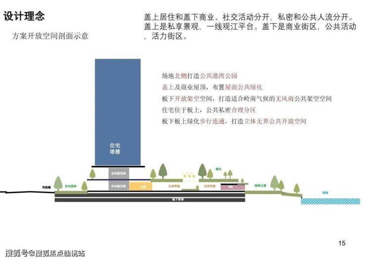 通过盖板设计造就的盖上私密园林、盖下滨江商业带,叠加270°环幕滨江会所和公共港湾公园,真的很city了。