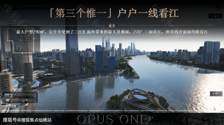 每一栋还有约7米的架空层,相当于每一户的看江面再提高了约14米,保证了户内望江景观。