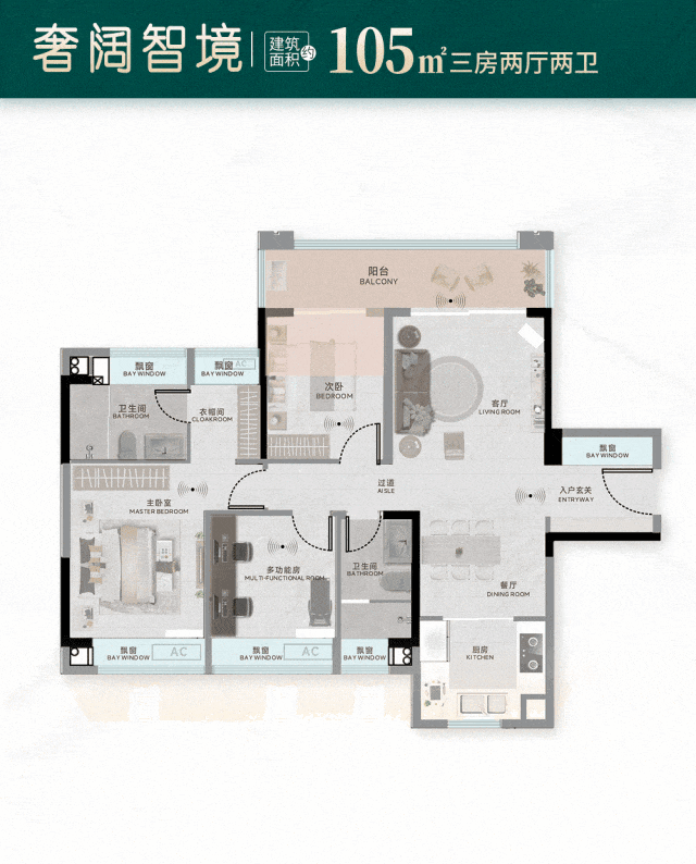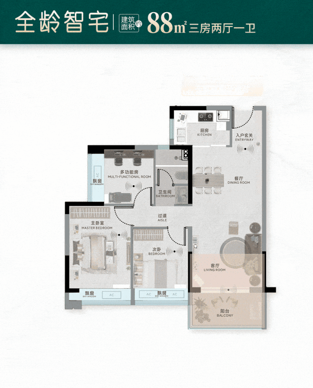 轻松满足二人世界至三代同堂居住需求,高得房率与可变性空间,适配家庭不同阶段成长