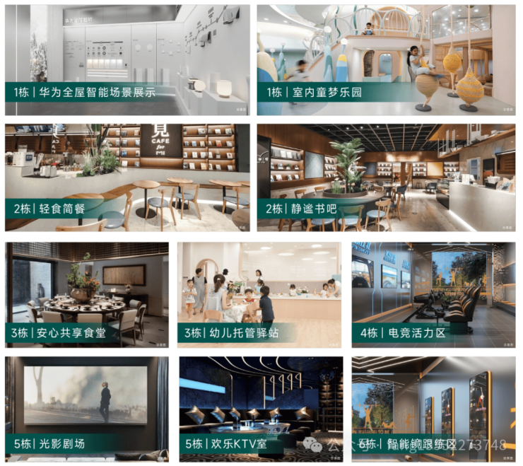 十大主题会所以 “三代人各得其所” 为核心,打造全龄友好的专属空间:孩童有乐园可嬉戏,年轻人有潮玩之地,长辈有休闲之所,更兼顾托管、食堂等便民需求与运动跟练等健康需求,日常休闲、娱乐、便民、运动场景全涵盖,真正实现 “一家老小,下楼皆有乐”。