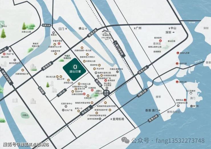 交通配套:一中轴、四横四纵道路配套,海陆空轨道立体交通——15 分钟直达香洲、1 小时粤港澳生活圈