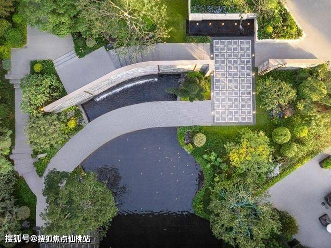 沿着归家动线往里走,大面落地玻璃框住的主水景里,轻盈小桥与石材景墙相映成趣,绿植与流水交融形成沉浸式景观,移步换景间,仿佛置身于滨海度假公园。