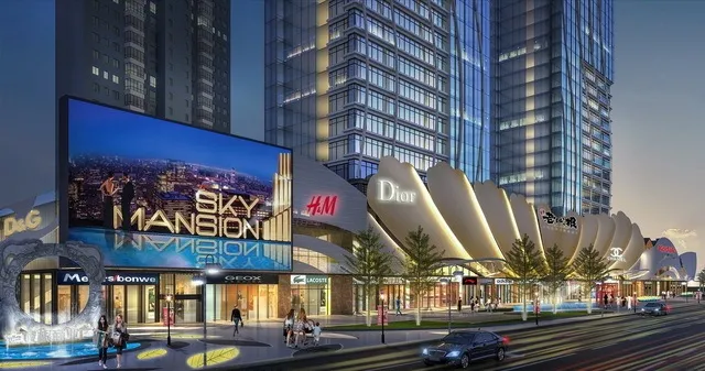 外立面风格、设计理念:外立面材料为部分石材装饰+铝合金+玻璃,大部分岩彩石涂料,项目建筑属于现代简约风格,建筑线条融入当地文化,营造移步异景、工整硬朗的设计理念,强调建筑整体性和独特性,让建筑群以一个整体的姿态面对城市。