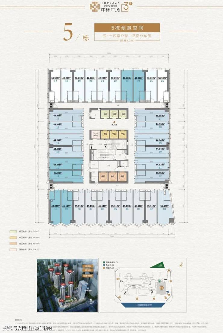 ⭐层高:3-14层3.3m、16-35层3.6m、36-42层3.7m