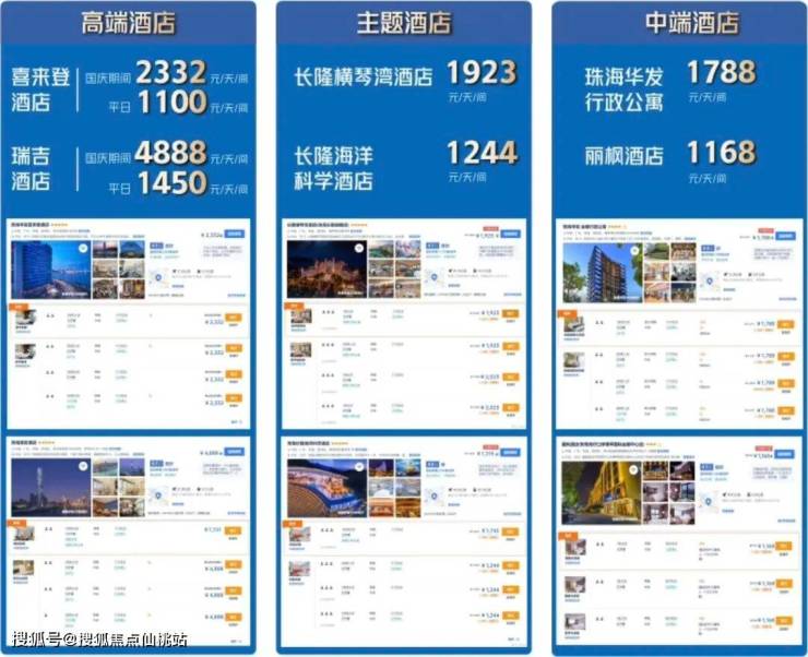 珠澳CBD国际星级酒店集群,近80%年酒店入住率。长隆酒店5000套住房一房难求,租金高达800-1500元/天,喜来登、瑞吉酒店房价高达1500-2500元/天。节假日更是水涨船高,供不应求。