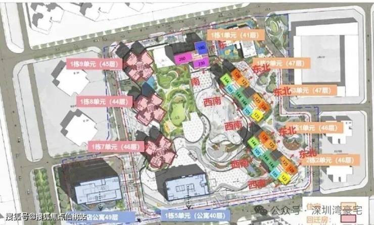 【新世界香蜜四季家园】占地约 4.1 万㎡,总建面约 46.7万㎡,容积率 7.62,停车位 2681个 。包含10栋塔楼+1栋幼儿园,1栋1/2/3单元、2栋1/2单元为住宅,1栋4单元是保障房住宅,1栋5单元为公寓,1栋6/7/8单元为回迁住宅。