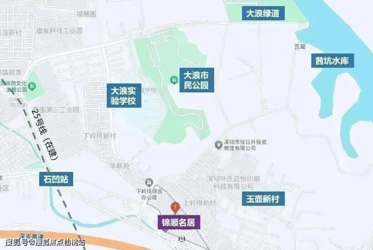 项目所处的区域实际上是商品房市场的新兴发展区域,大家对该片区的认知度普遍不高。该区域在龙华大浪的北部,受沈海高速的影响,与大浪、龙华等核心腹地形成明显的区域发展界线,受割裂影响较大。基建、配套、城建等综合发展水平普遍较低,工业厂房、民房、老屋村等地块功能混杂,无论从观感还是宜居角度而言,都有较大的改善空间,未来临近25号地铁线“石凹站”。