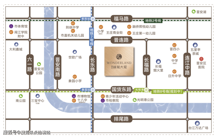 生态资源方面,周边1公里内覆盖晋安河公园、光明港公园、南公园等多处城市绿肺。500米可达晋安河公园,640米达光明港公园,为高密度的市中心提供了难得的休闲空间。