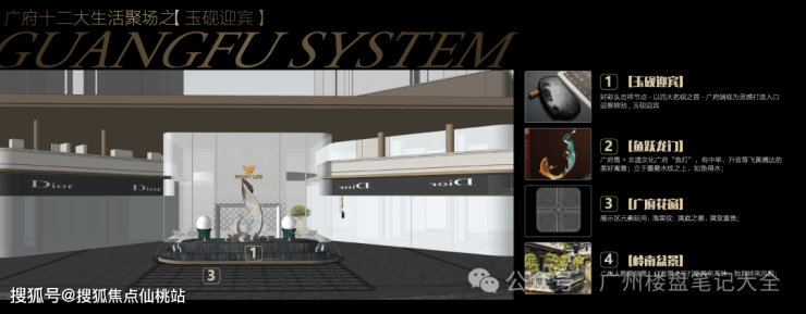 ,融入广雕、千年广绣、广府花窗设计,如广雕对景照壁源于余荫山房抽象龟纹石雕,寓长寿之意、镇宅安宁;广府花窗,寓意满堂富贵等,代表广府的美好祝愿