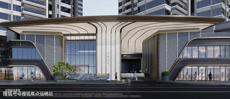 中建天钰主入口采用酒店式落客区设计,进入小区前,必须穿过拥有高透外立面的归家大堂,约9米的挑高,竖向尺度上便拉满了酒店迎宾感。