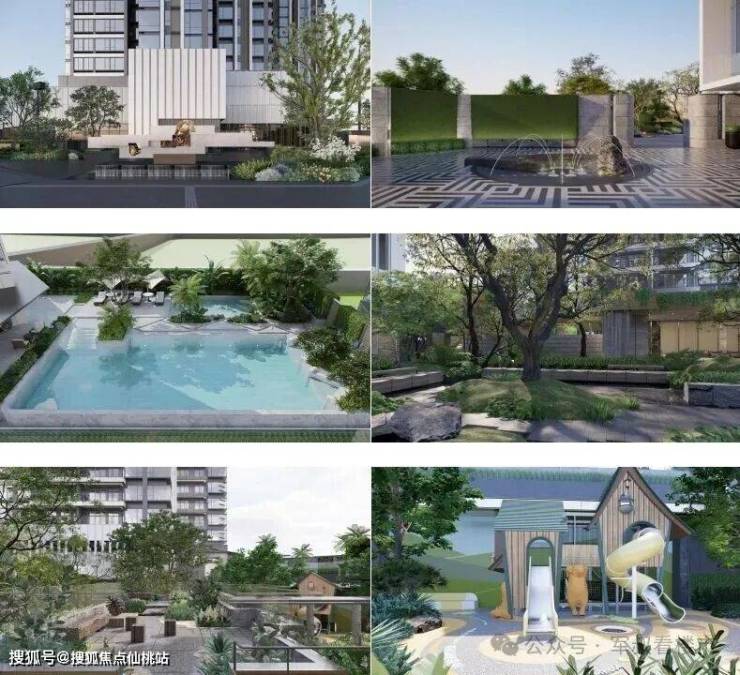 • 立体森谷园林:特邀城市级公园设计大师【派澜设计】执笔,落地飞瀑会客厅,无边际泳池、双儿童主题乐园等度假场景,将自然垂直植入社区每一个角落。