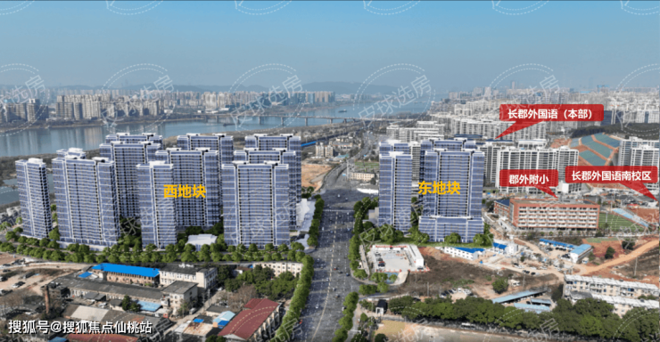 从实景融合的鸟瞰图不难看出,东地块距离长郡外国语小学、郡外南校区非常近!