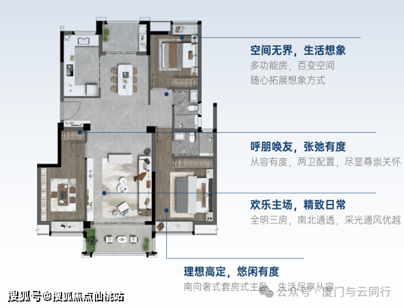 就产品来说,除了59平方米的产品,基本上都能做到南北通透,空间尺度还是比较大的,不足的地方就是功能间会小一点,相对目前主流的最新商品房项目的产品来说。