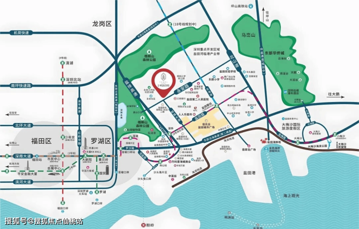 紧邻地铁8号线深外高中站、盐田路站双地铁口,4站直达罗湖商圈,5站连通大小梅沙,繁华与自然快速切换。