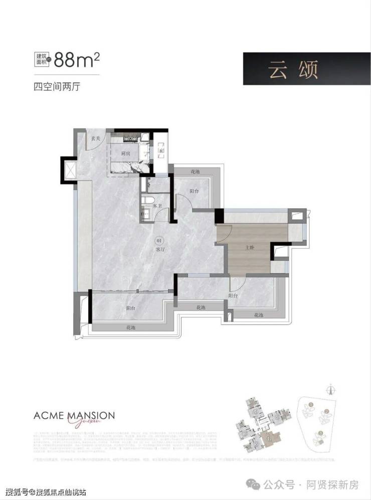 ✔超配产品:2.5容积率 约25%阳台率,建面约88-105㎡全南向四空间